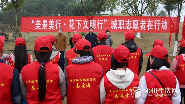 据了解,“美景美行 花下文明行”志愿者服务活动号召城职学院全体学生利用周末时间开展社会实践,参加文明劝导、文明旅游等关爱社会、关爱他人、关爱自然的“三关爱”志愿服务活动,从而形成“传帮带、你帮我帮大家帮”的良好氛围,为永川的城市环境建设贡献力量。